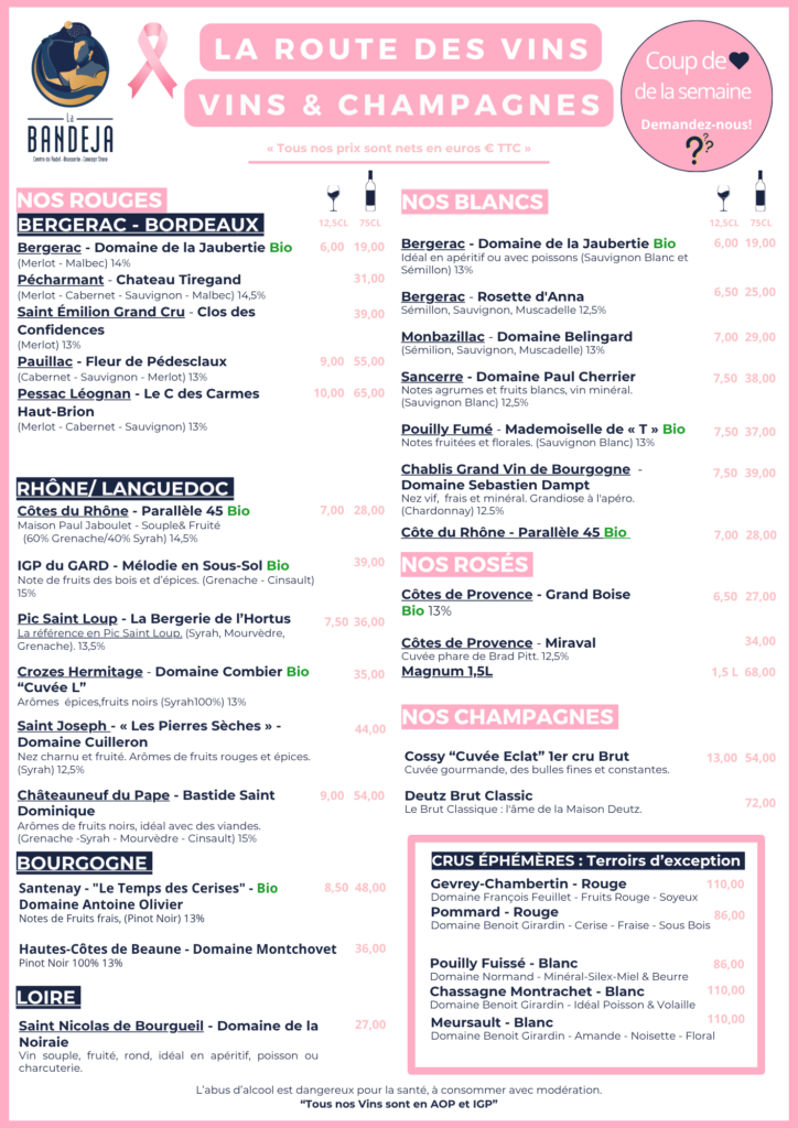 DÉJEUNER du JOUR du Lundi au Vendredi tous les Midis- CARTE des SUGGESTIONS - CARTE des VINS -